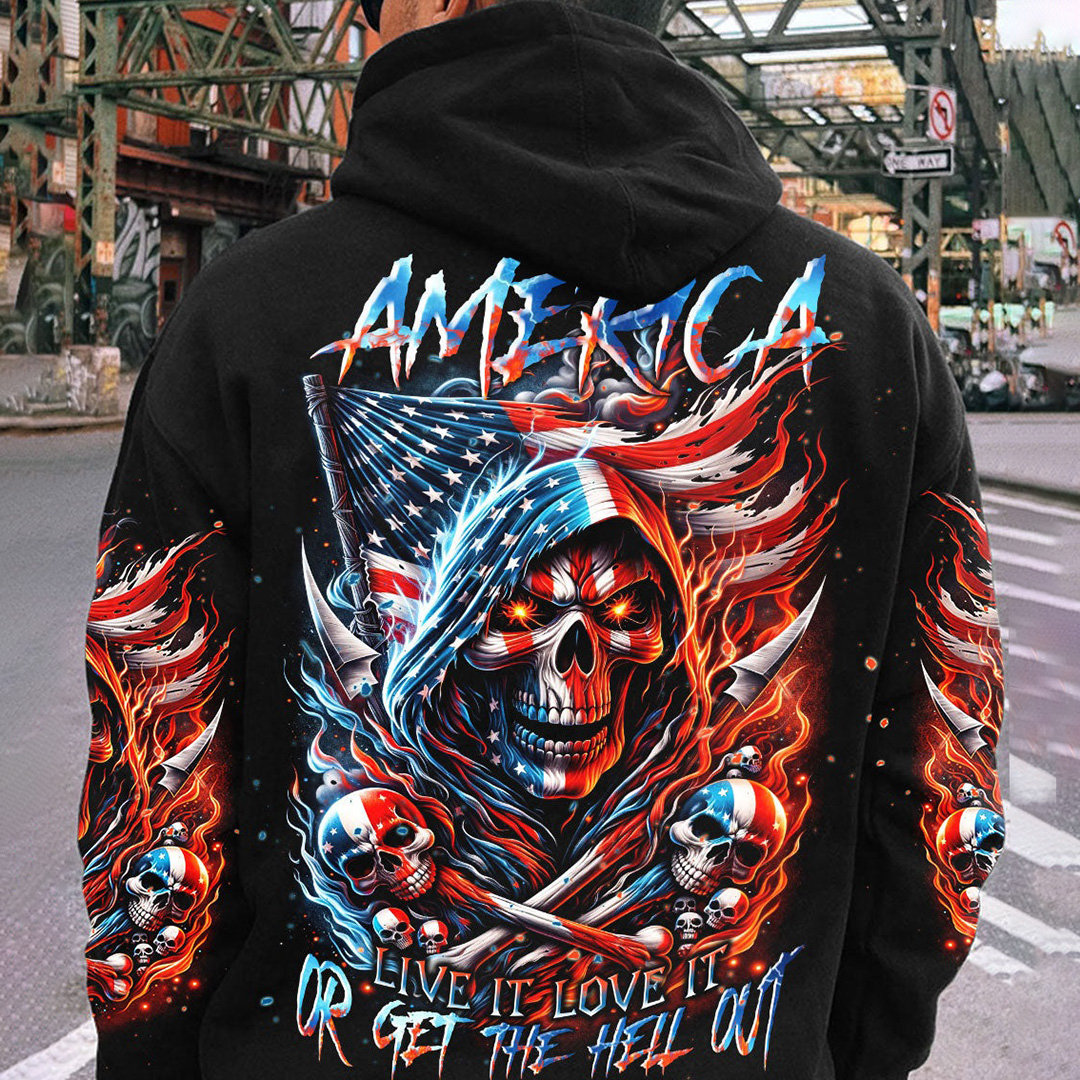 This American Life Love It Or Get Out Skull Allover Print Men's Hoodie